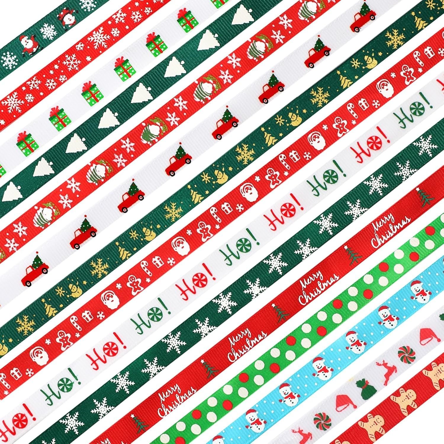 Christmas Ribbon, 15 Yards 3/8 Inch Christmas Grosgrain Ribbons for Gift Wrapping