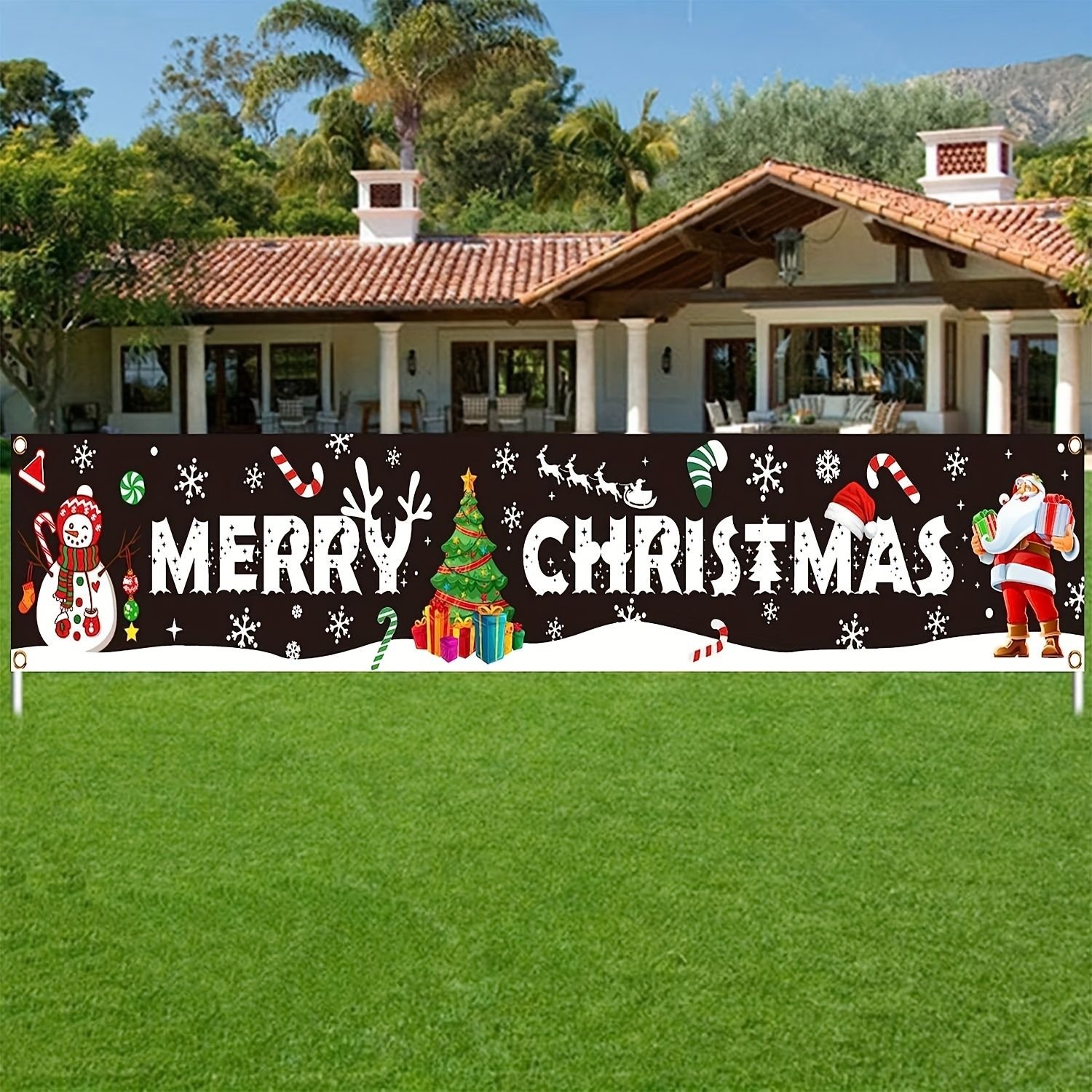 1pc, Festive Large Merry Christmas Banner - Huge Santa Claus Sign for Holiday Party Supplies and Home Decor - Perfect for Outdoor, Indoor, Yard