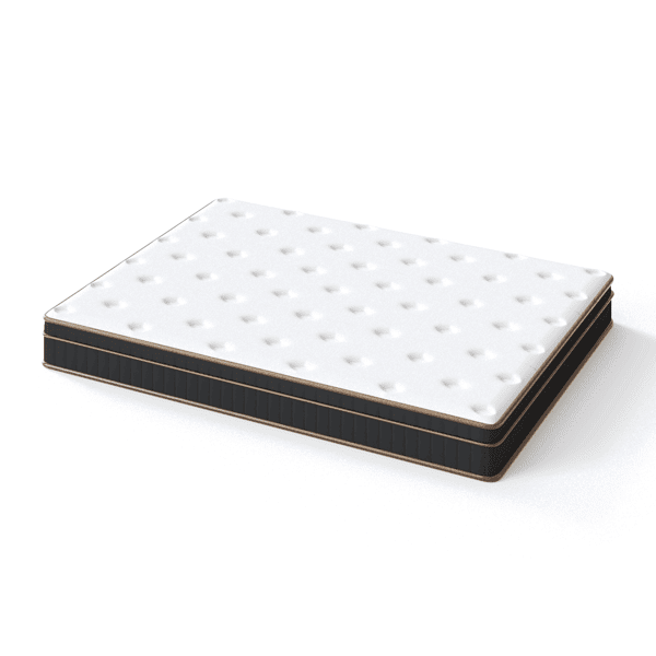 The mattress boasts a sleek black gold trimmed edge and a clean white cover, creating a modern and elegant look that complements various room decors. The premium stitching enhances durability while adding a refined touch to the overall design.