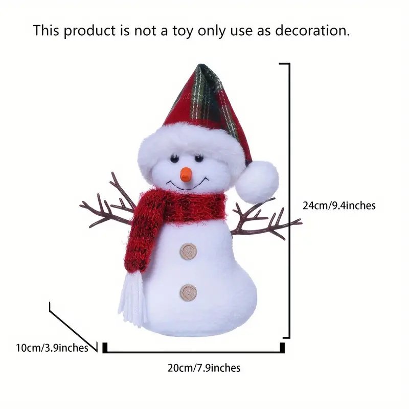 ENHANCE FESTIVE DECORATIONS - Enhance holiday decor with our Christmas snowman. Your stylish Rudolph plaid hat, cleverly integrating festive designs and warm colors, will create a charming and charming Christmas atmosphere, suitable for enhancing your festive decorations.Unique Sitting Posture:This cute Christmas snowman captivates with his adorable sitting posture, suitable for adding a lively touch and creating a festive atmosphere in any window or home. Bring joy and joy to your holiday decoration.Cozy Companion: made of polyester fabric, this cute Christmas snowman is safe and durable, suitable for adults and children to play.Holiday Gift - Spread the Christmas spirit and surprise your loved one with this adorable Christmas snowman. Perfect as a gift for your girlfriend, son, friend, sister or daughter, add a touch of joy to any holiday decoration.Wide application: lift up the festive atmosphere of your home with our Christmas snowman. This charming decoration will spread joy and joy in your living room, bedroom or on your favorite chair or sofa.