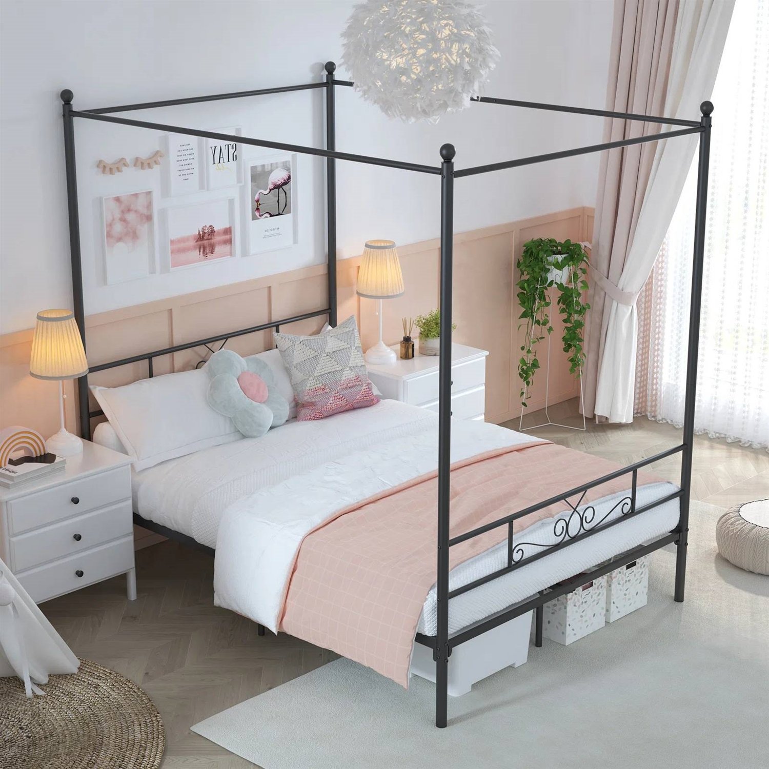 Full size Four Poster French Country Metal Canopy Bed in Black Finish Full size Four Poster French Country Metal Canopy Bed in Black Finish Full size Four Poster French Country Metal Canopy Bed in Black Finish