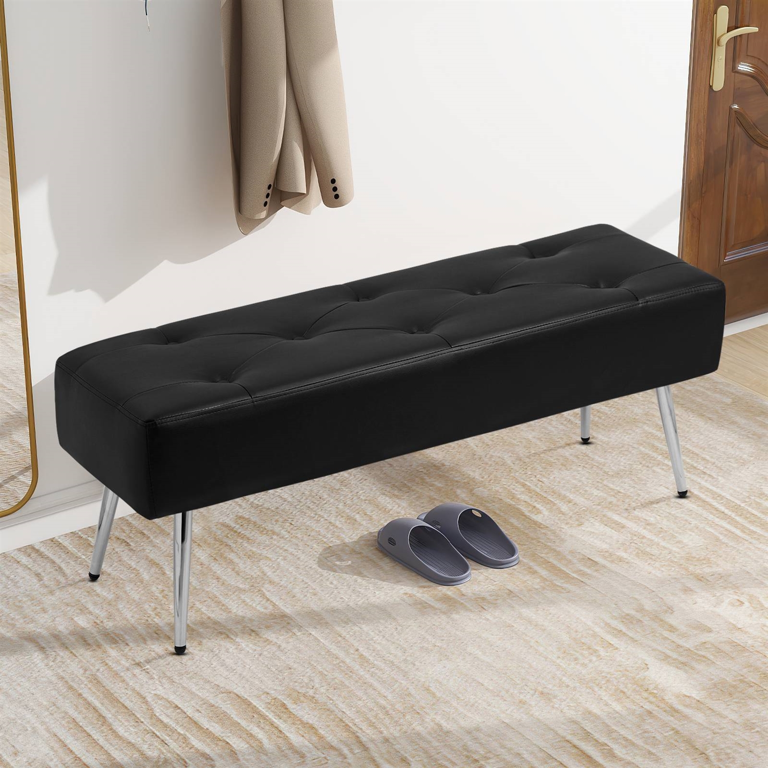 Mid Century Modern Bedroom Bench Ottoman with Black PU Leather Seat