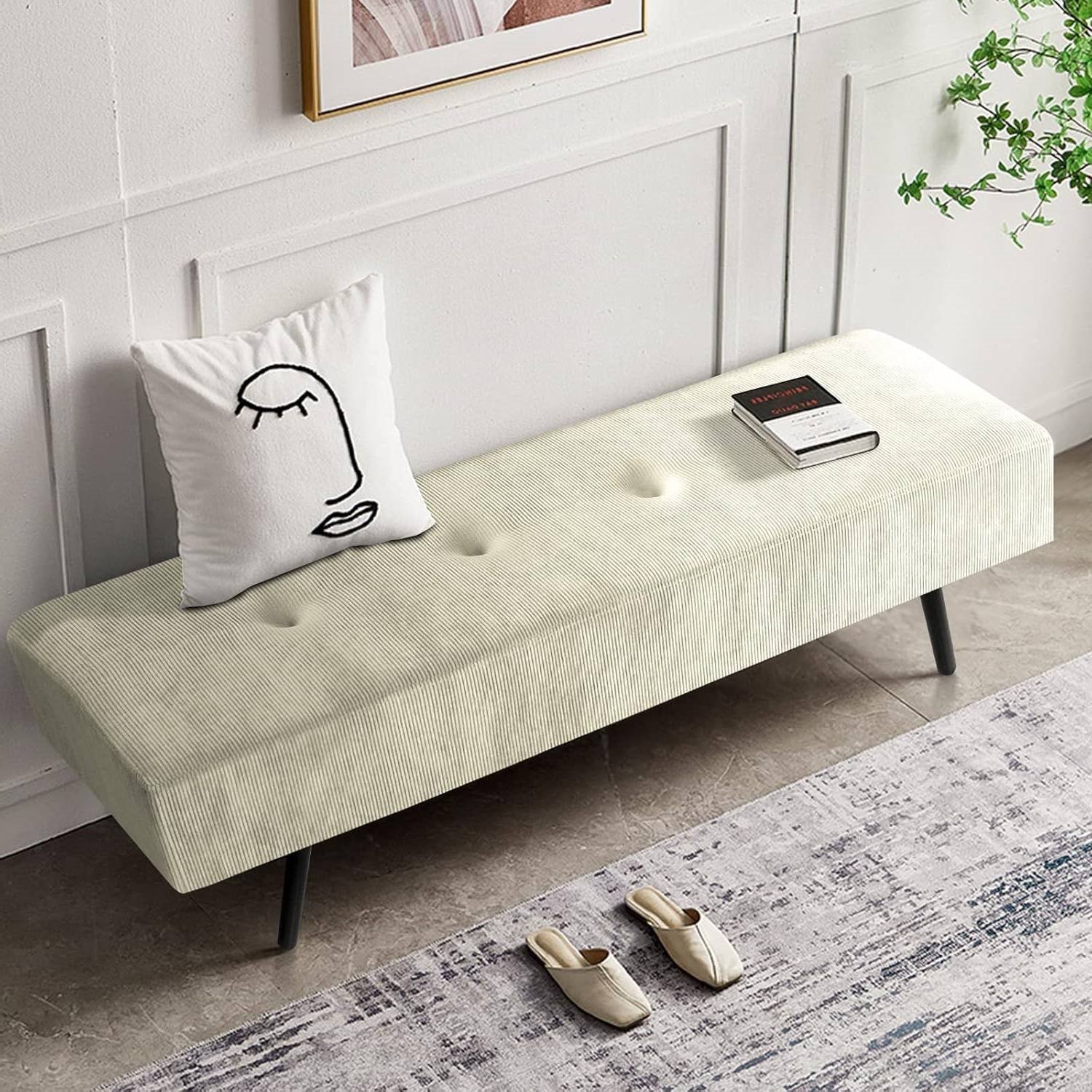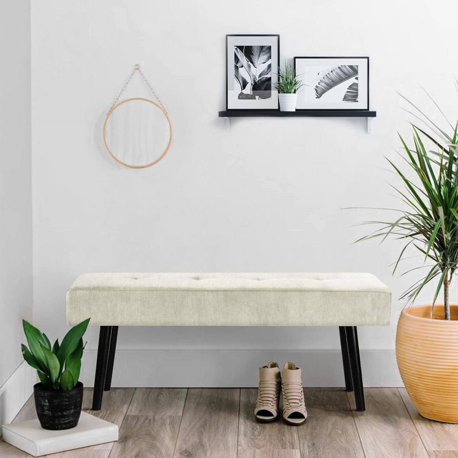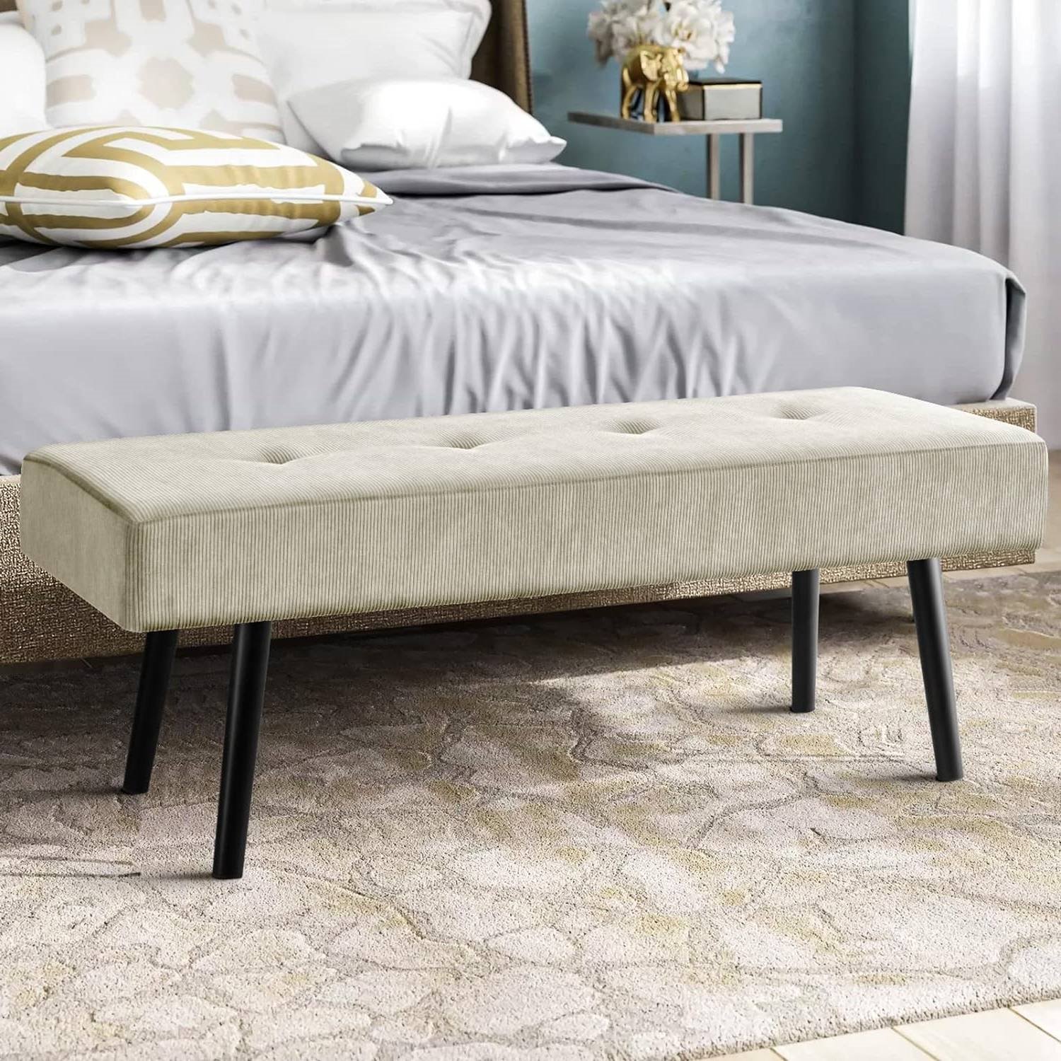 Mid-Century Beige Corduroy Upholstered End of Bed Bench with Black Metal Legs Mid-Century Beige Corduroy Upholstered End of Bed Bench with Black Metal Legs Mid-Century Beige Corduroy Upholstered End of Bed Bench with Black Metal Legs Mid-Century Beige Corduroy Upholstered End of Bed Bench with Black Metal Legs Mid-Century Beige Corduroy Upholstered End of Bed Bench with Black Metal Legs