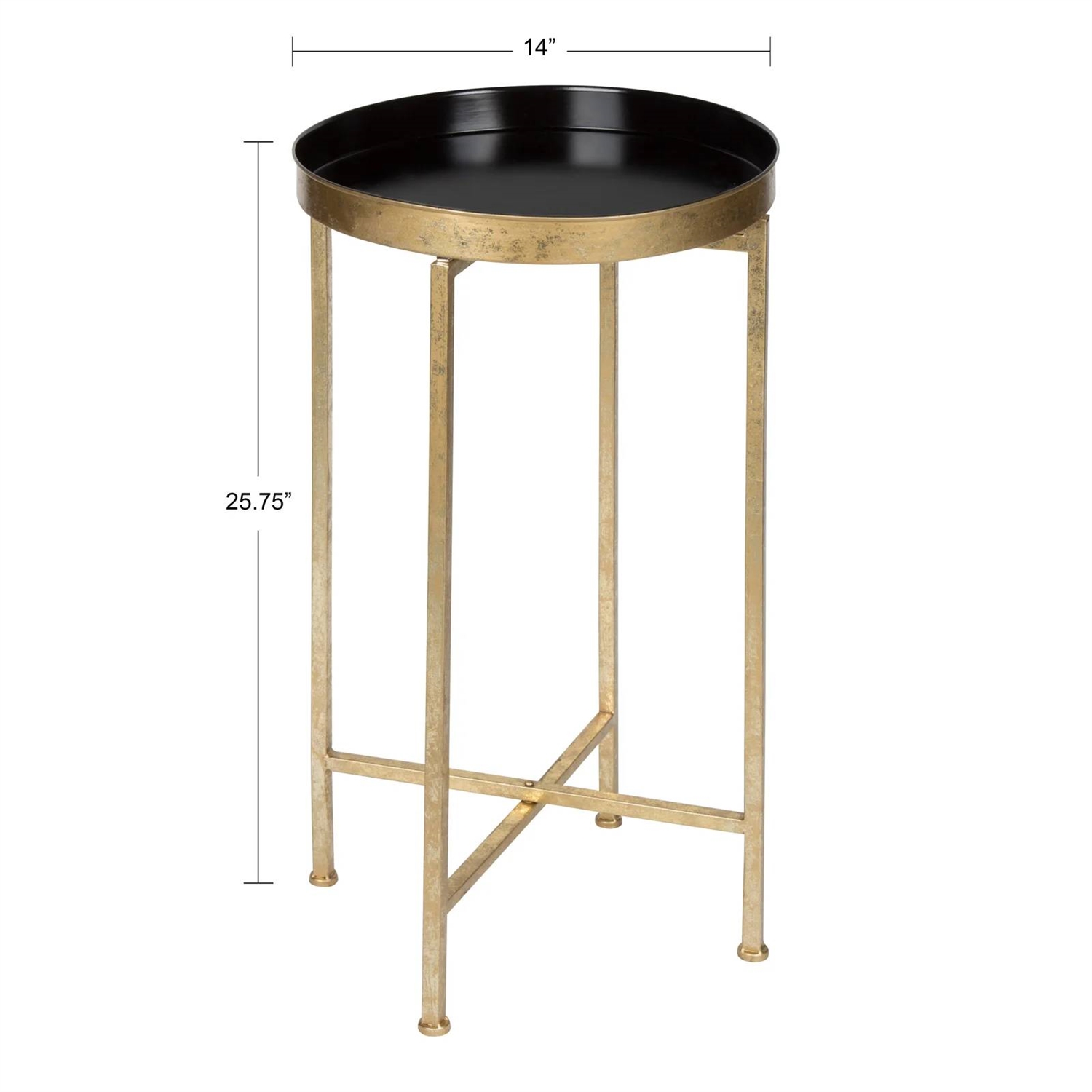 Gold Finish Metal Round Nightstand End Table with Removable Black Tray Top